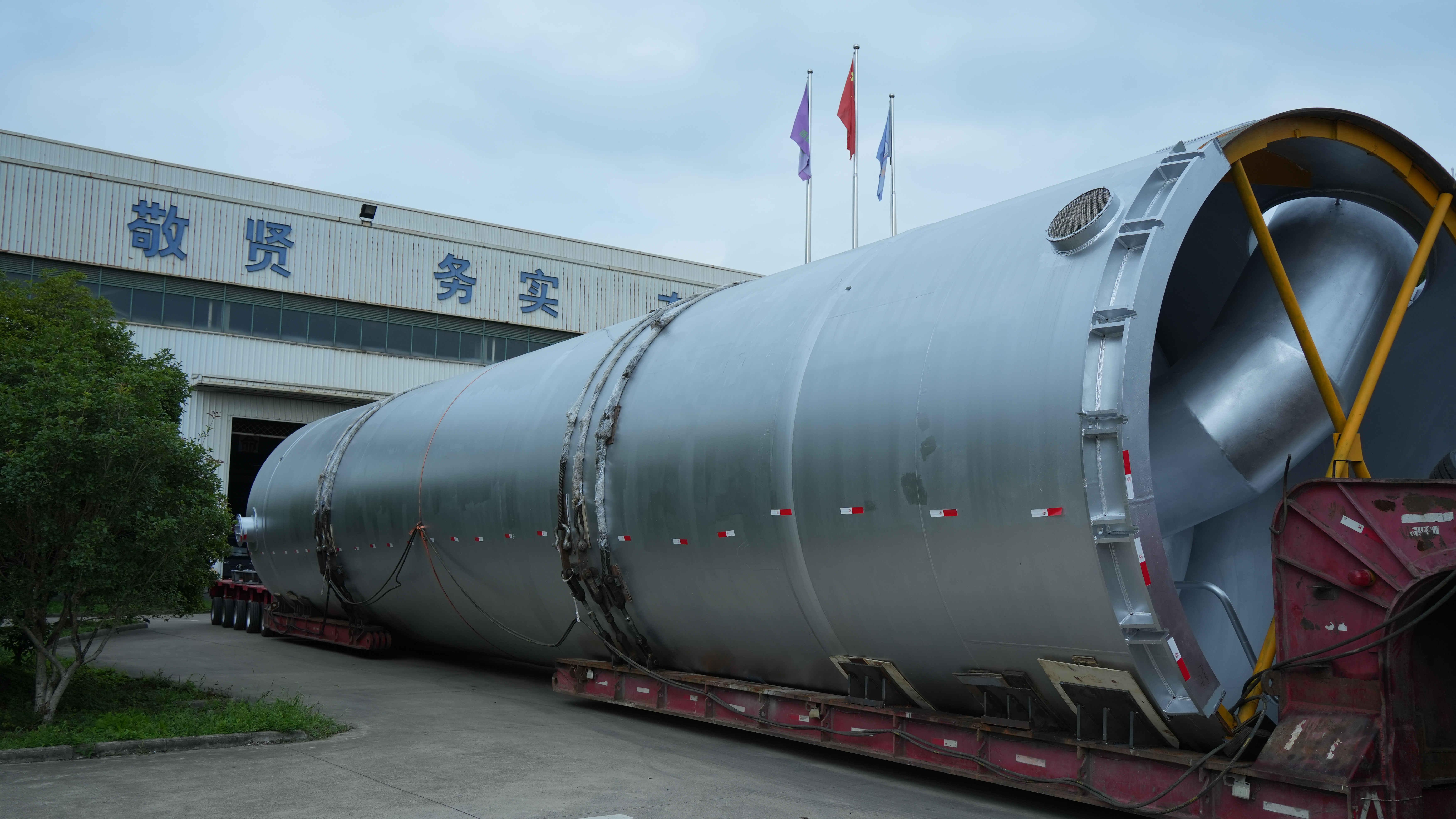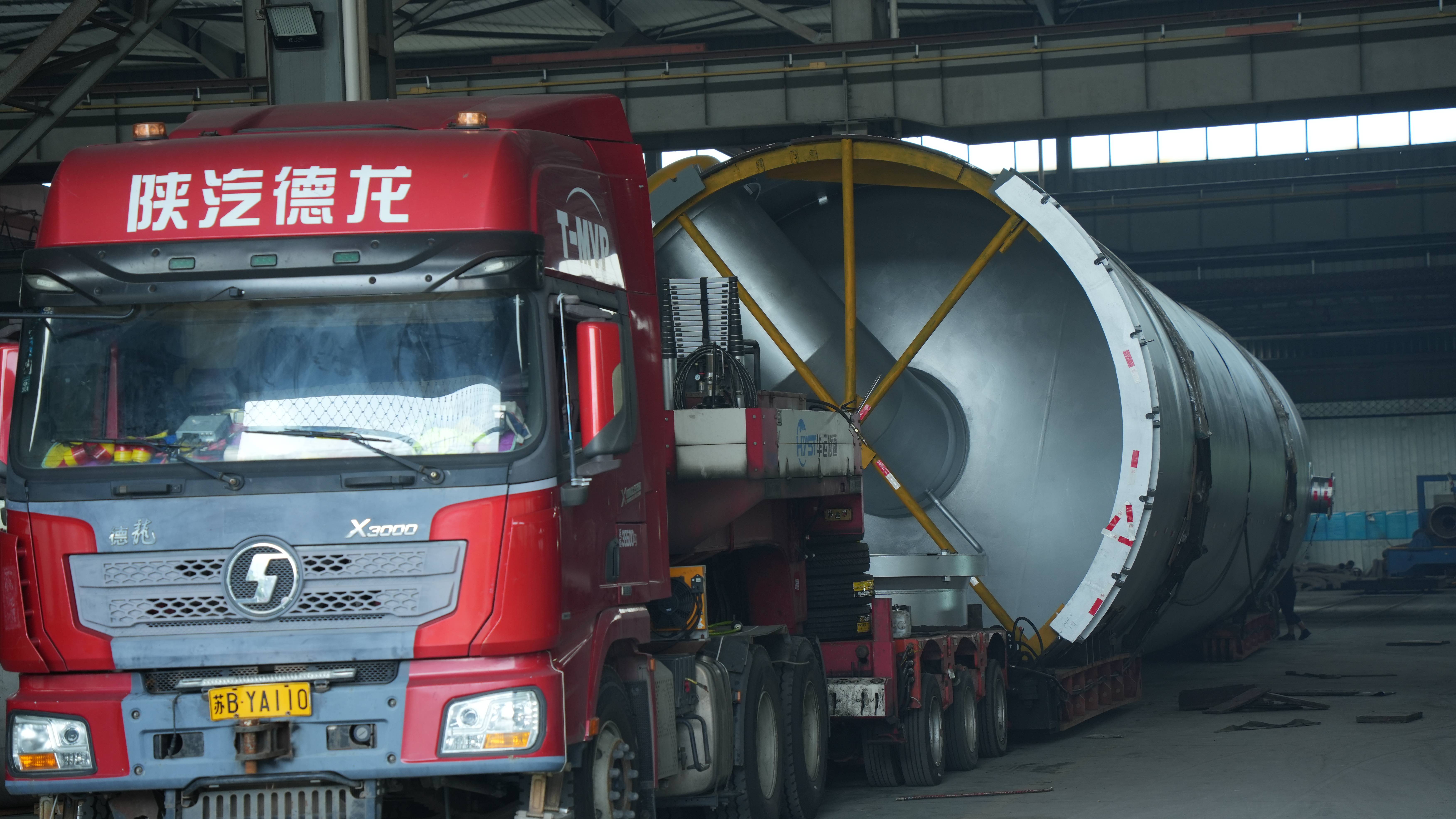 我公司制造的兩臺(tái)中科中綠空氣儲(chǔ)能項(xiàng)目的關(guān)鍵設(shè)備分子篩吸附器,尺寸:5000×25000,重大150噸/臺(tái),順利交付業(yè)主。